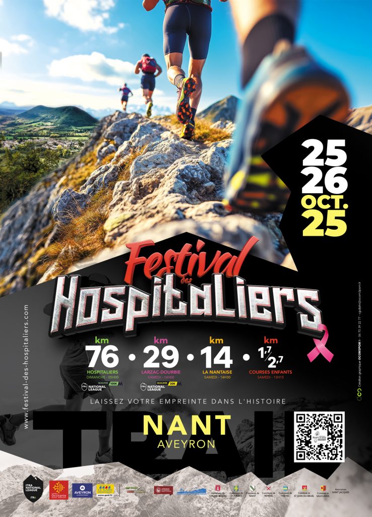 Une semaine plus tard, c’était au tour de notre Président et de Manu, accompagnés par Éric, de partir non loin de Millau à Nant, dans le sud de l’Aveyron afin de participer au Festival des Hospitaliers, un trail de 75 kilomètres avec plus de 2600 mètres de dénivelé positif entre la vallée de la Dourbie et le causse du Larzac.